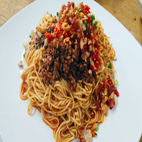 宜賓燃面香氣濃郁,重油重色,入口筋道酥脆。燃面名稱由來有一說,因此面干燥多油,挑起來可如火繩一般點(diǎn)燃故名。宜賓燃面選用當(dāng)?shù)貎?yōu)質(zhì)水面條為主料,以宜賓黃芽菜、小磨麻油、鮮板化油、八角、山奈、芝麻、花生、核桃、金條辣椒、上等花椒、味精以及香蔥、豌豆尖或菠菜葉等輔料,將面煮熟,撈起甩干,去除堿味,再按傳統(tǒng)工藝加油佐料即成。不僅本地人喜愛,就是中外游人也贊不絕口。